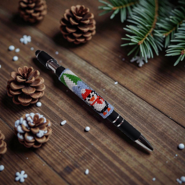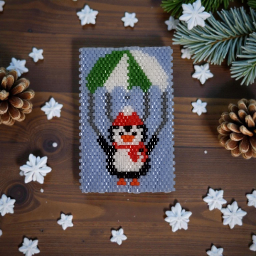 PDF-Anleitung für Kugelschreiberumrandung „Pinguinfall“ in Peyote-Technik, 42×22 Reihen, 924 Delica 11/0. Winterliches Motiv.